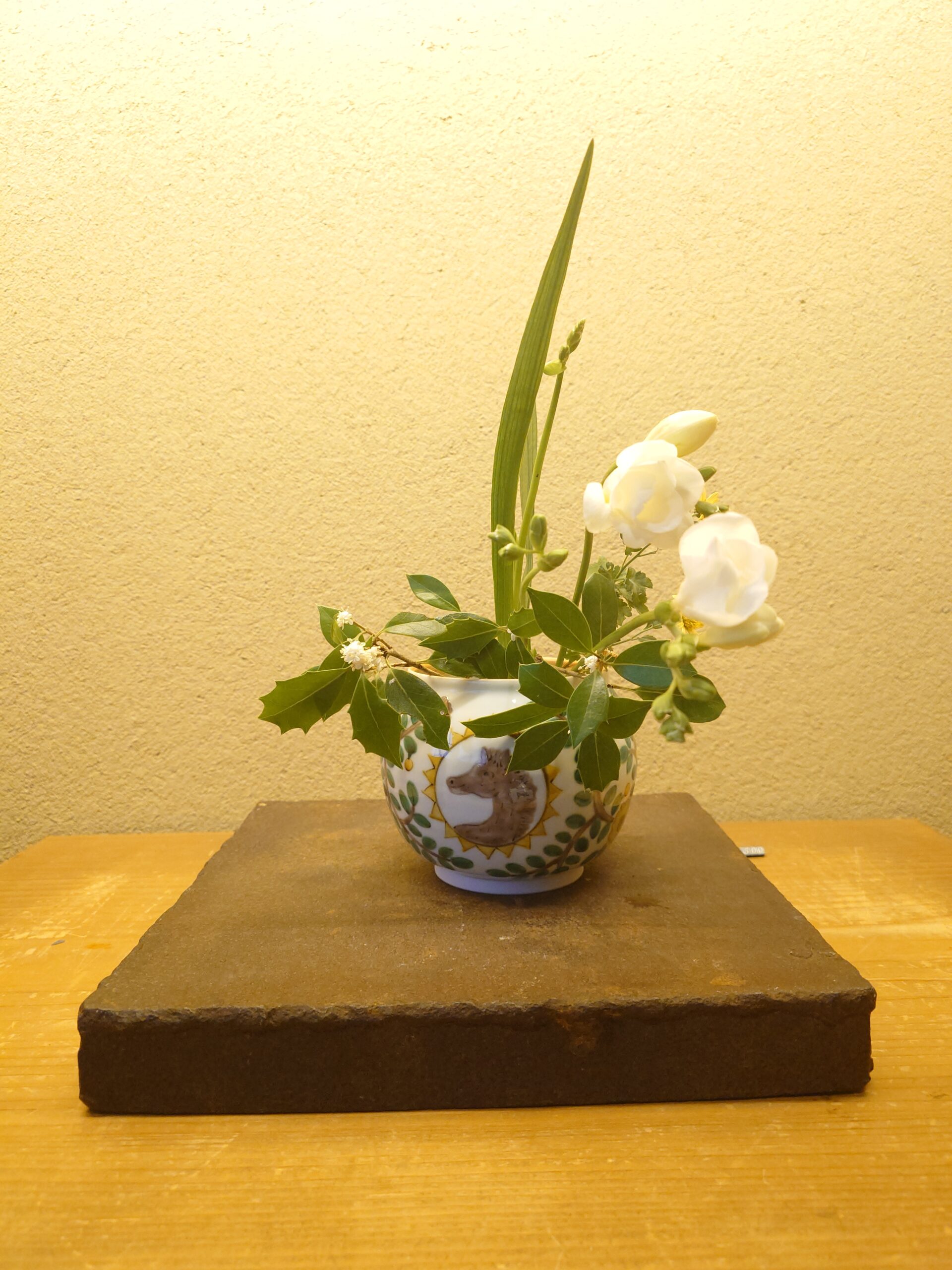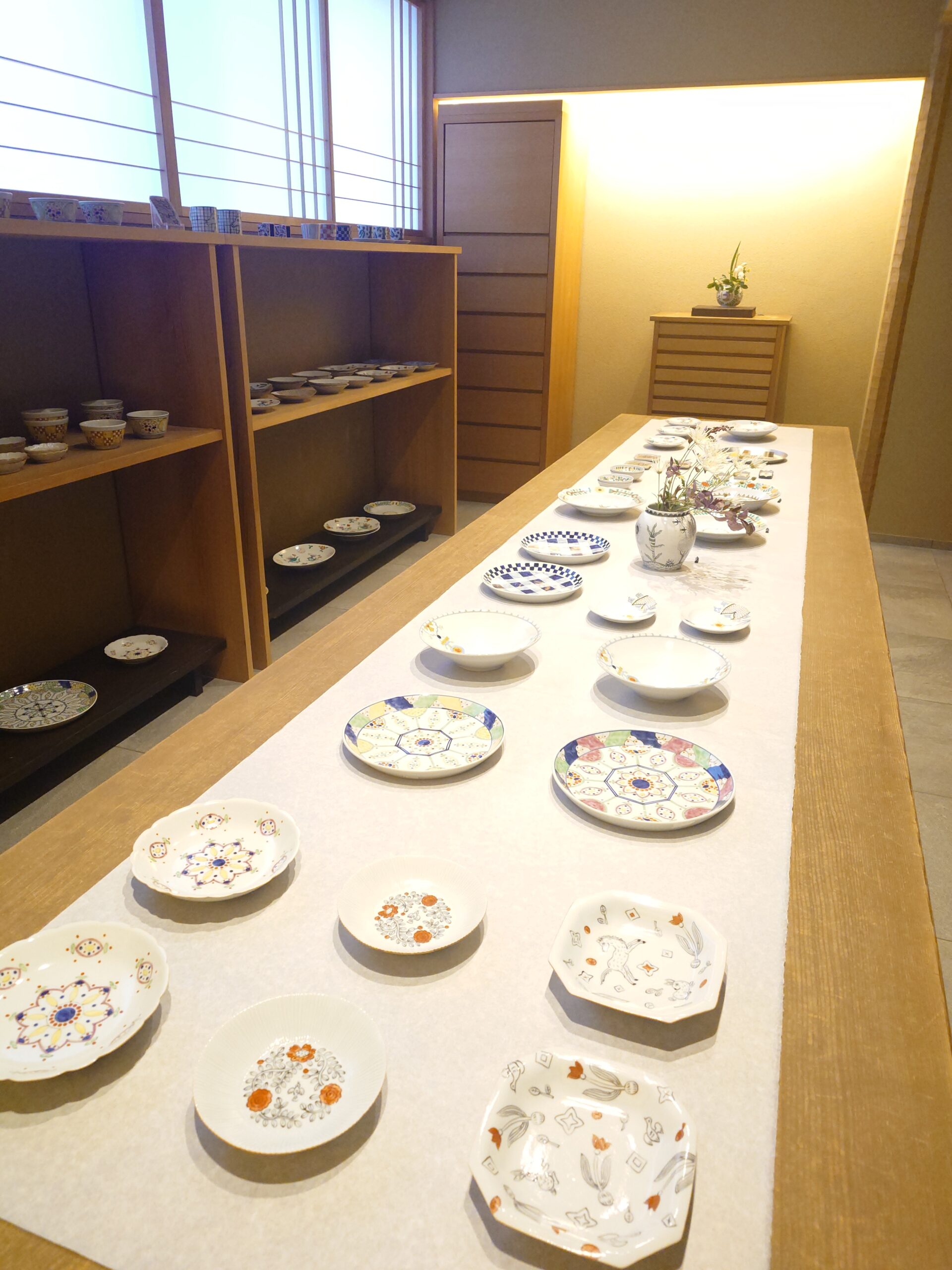来年の干支である「午」をはじめ、定番のうさぎと愛らしい猫や犬が一枚のうつわに描かれた特別な作品も並びます。