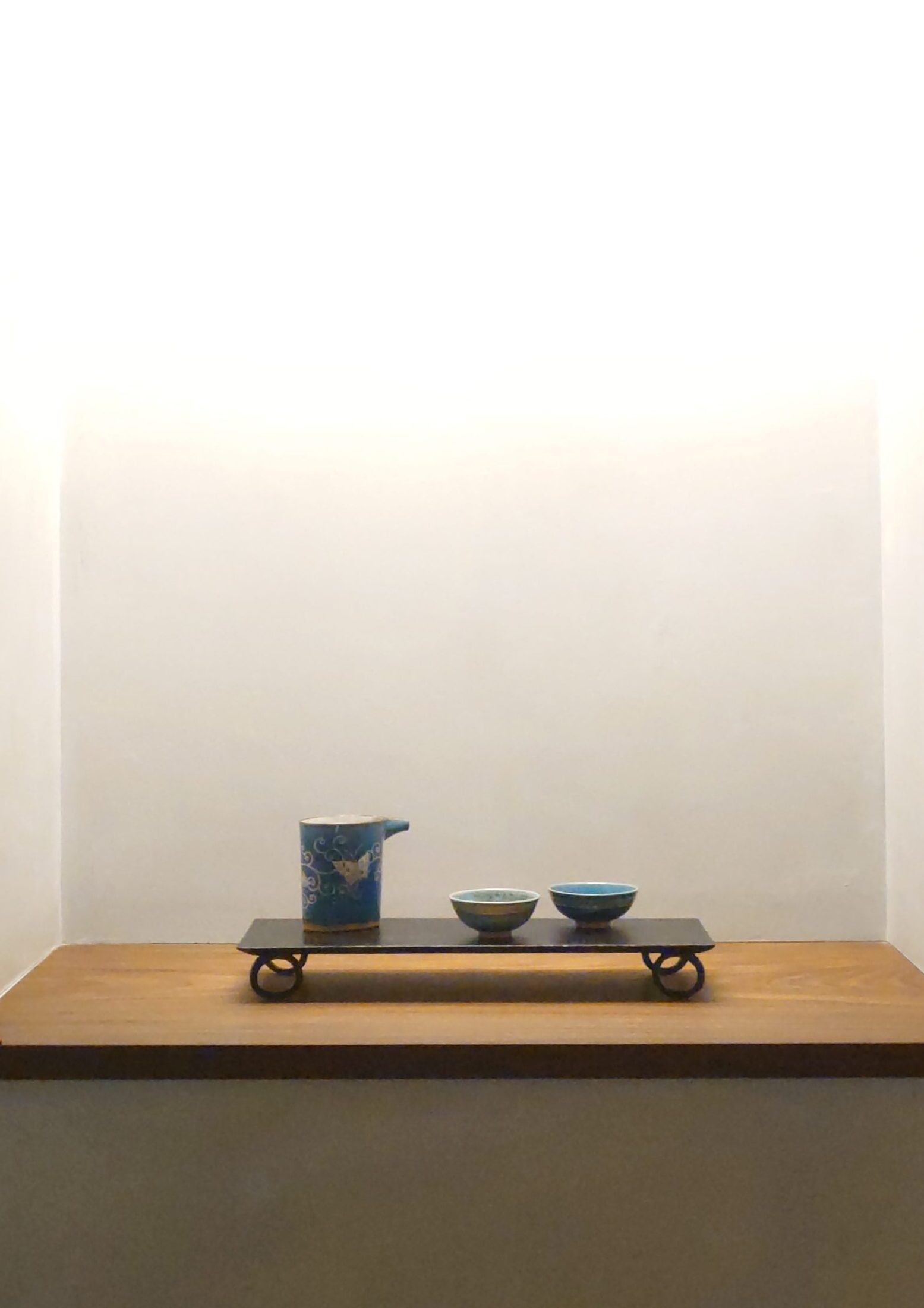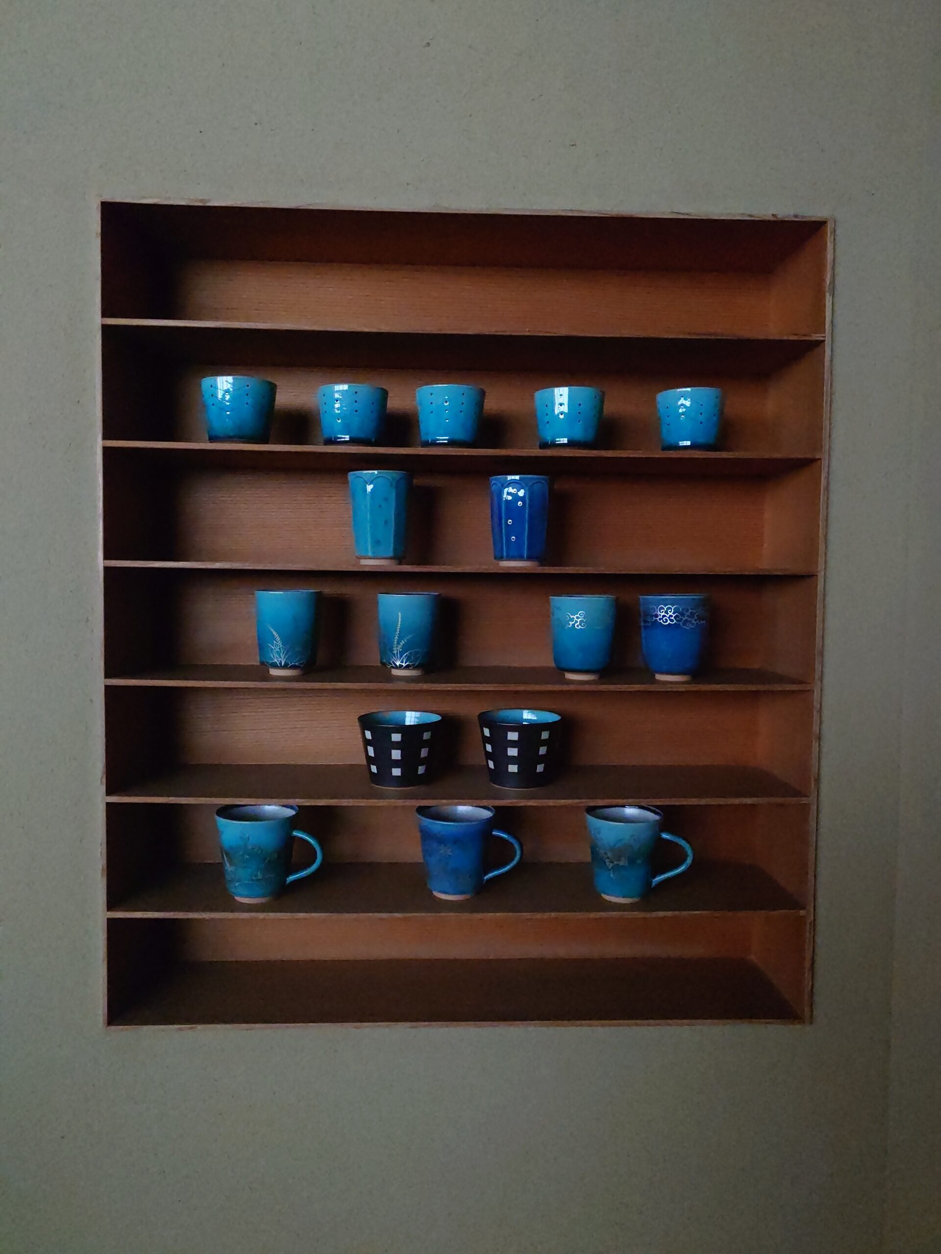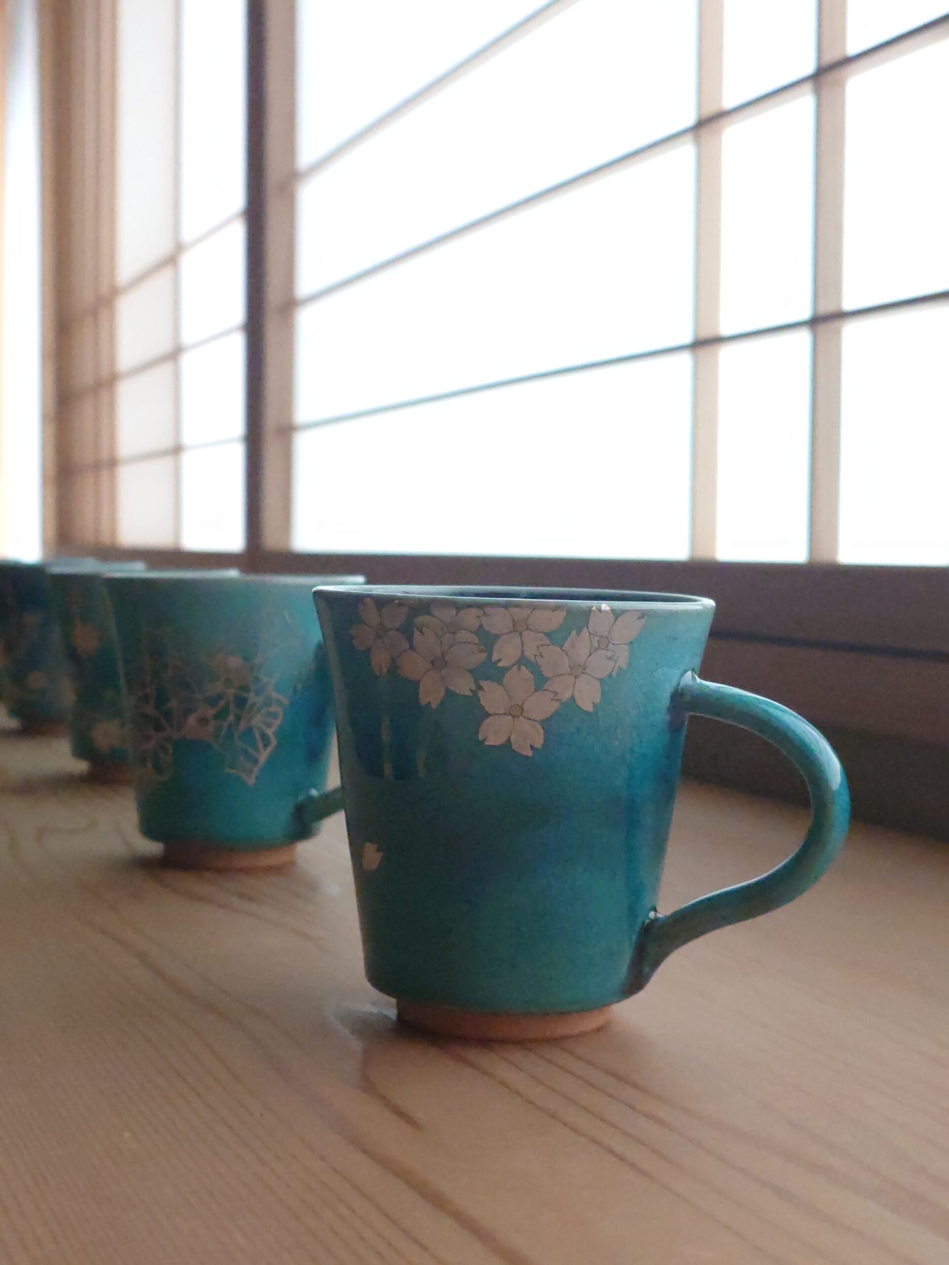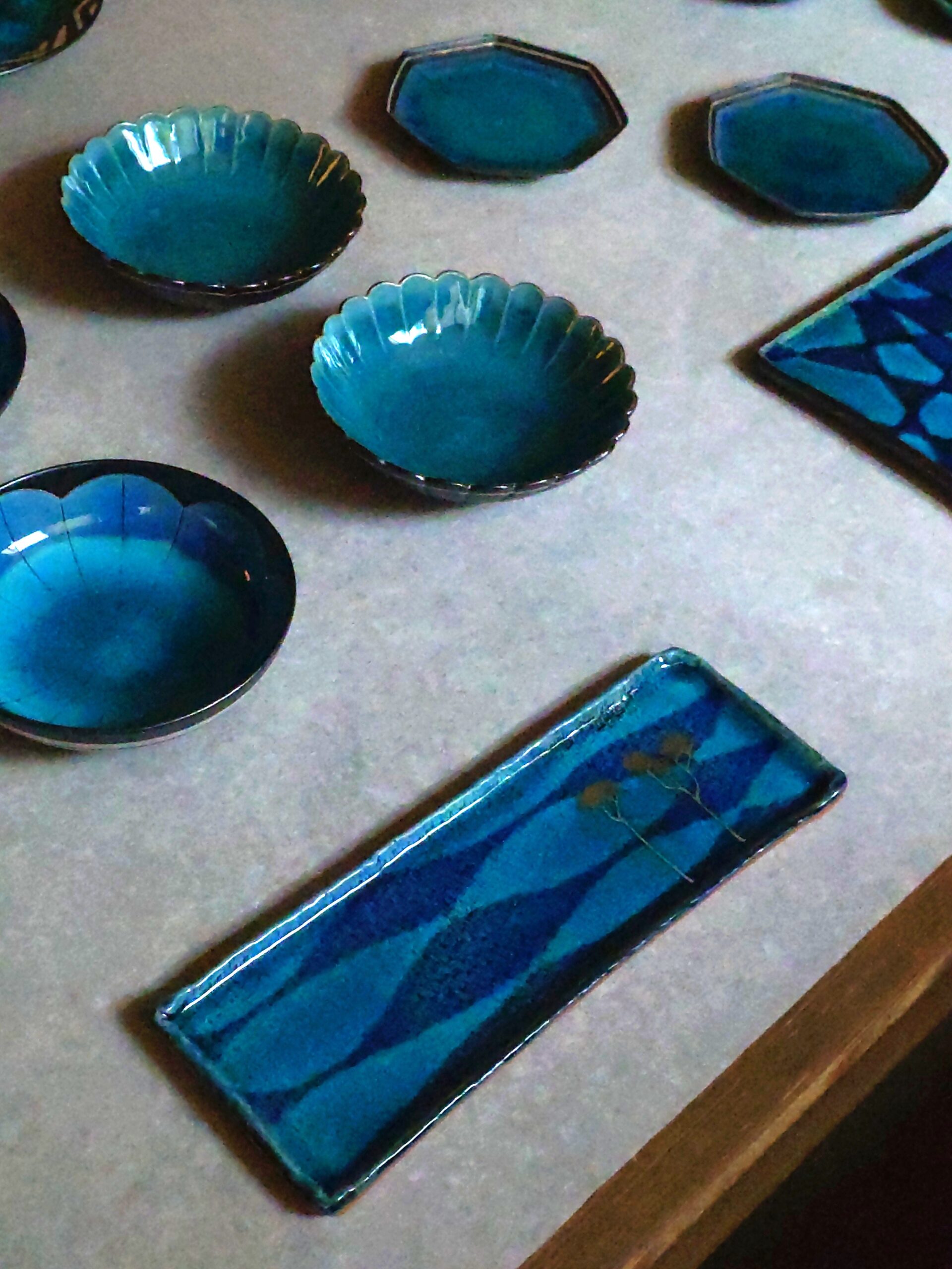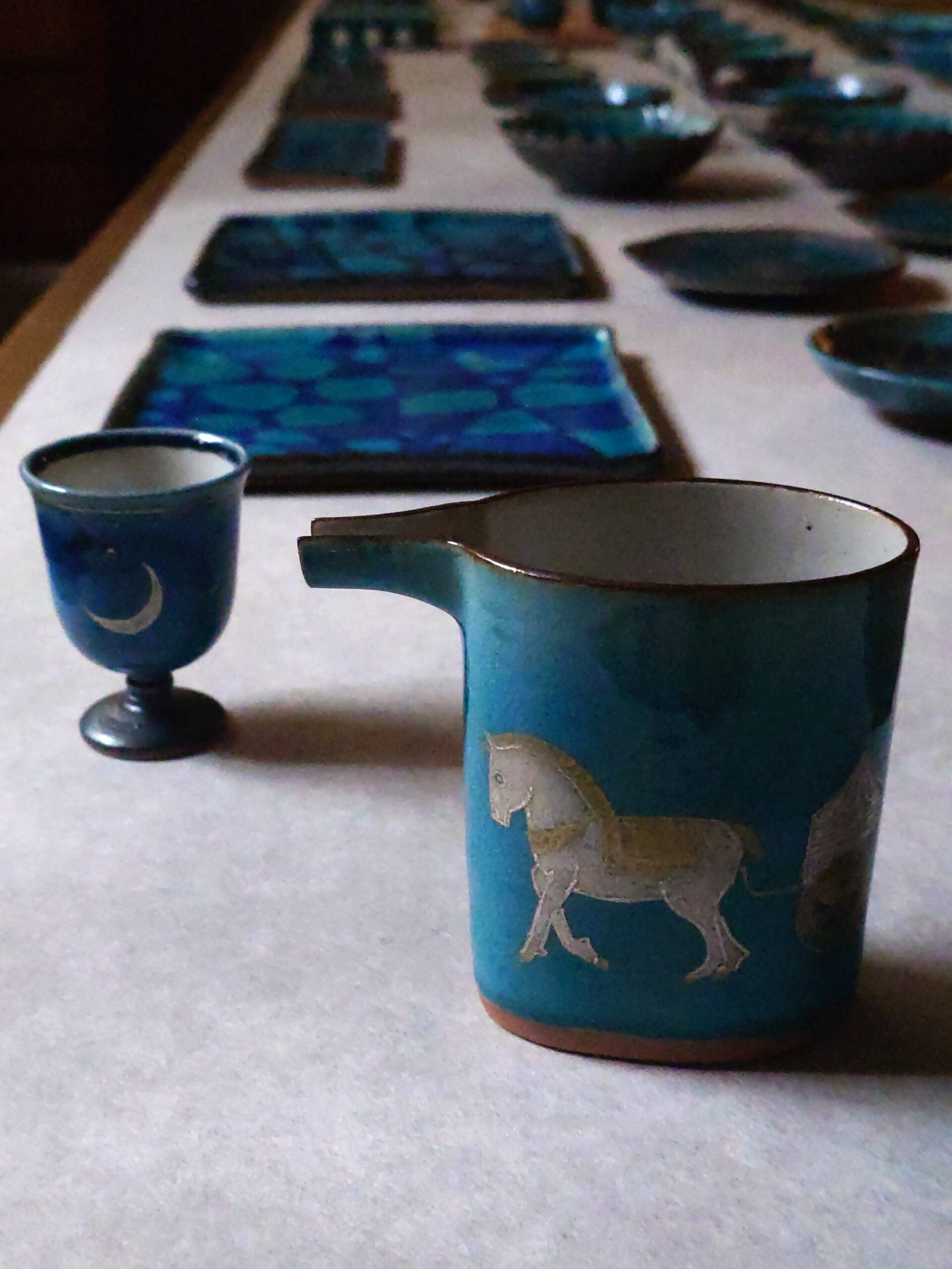 青い海や夕日の山並みの美しい色をブルーの釉薬で、