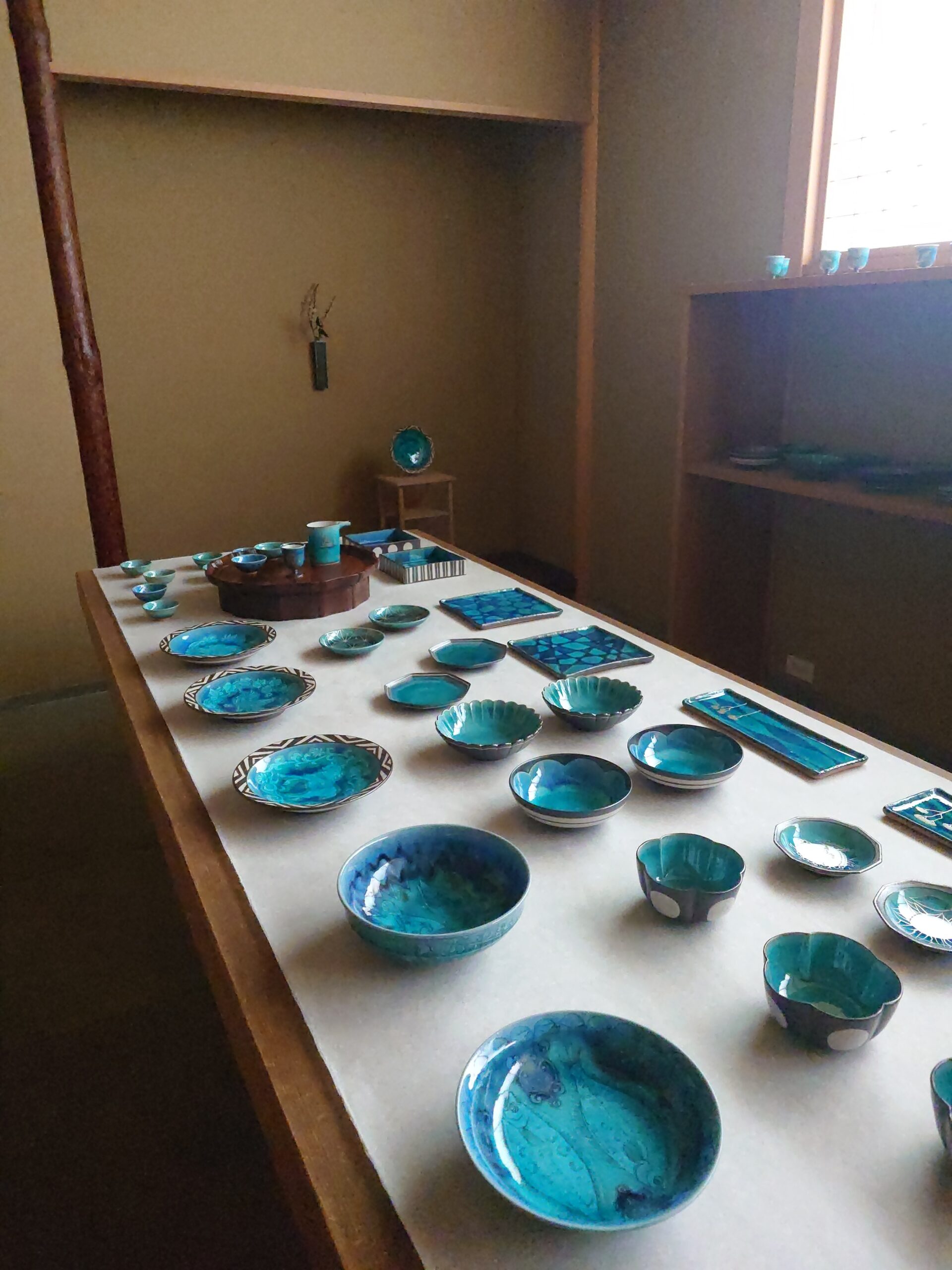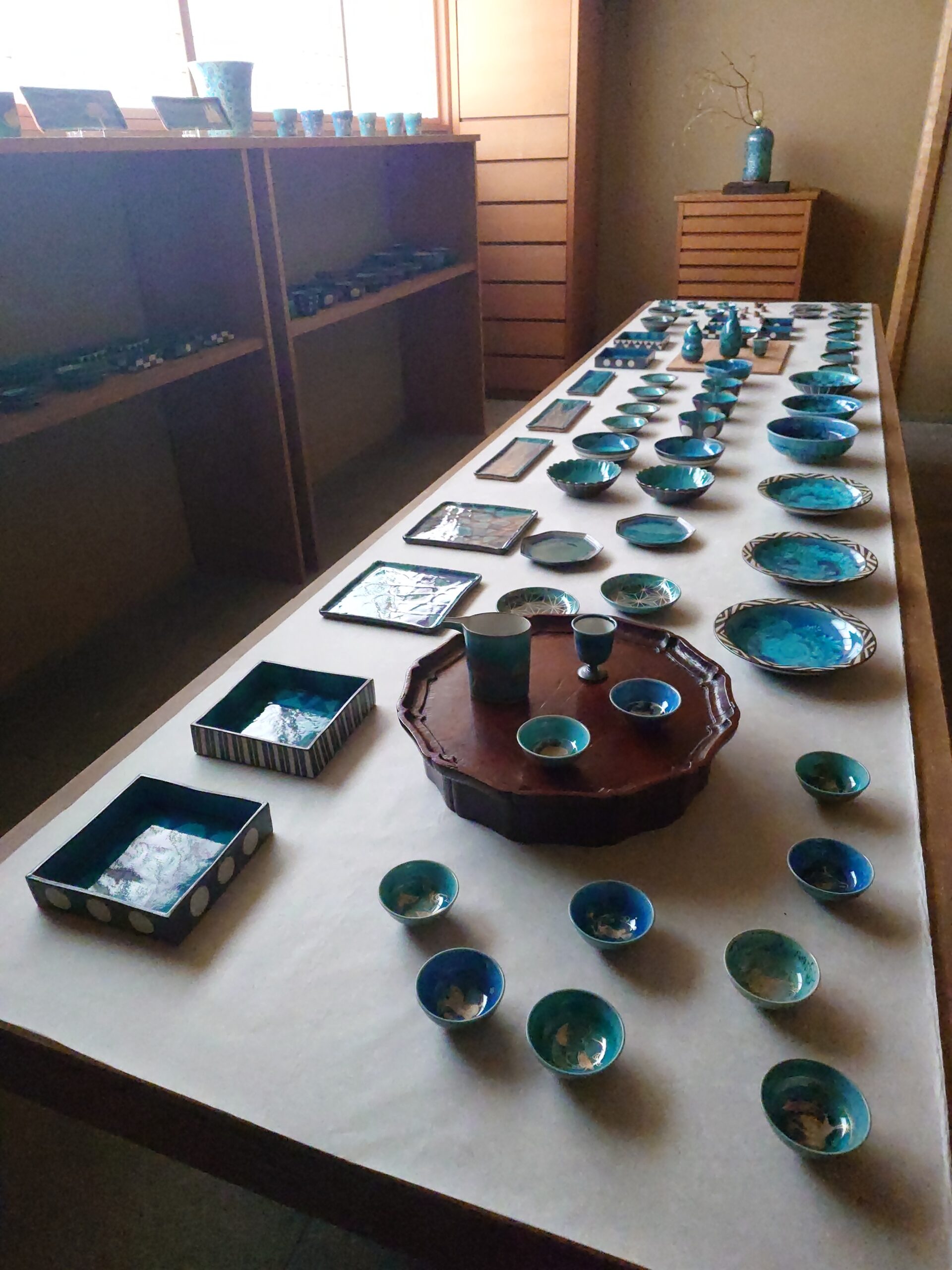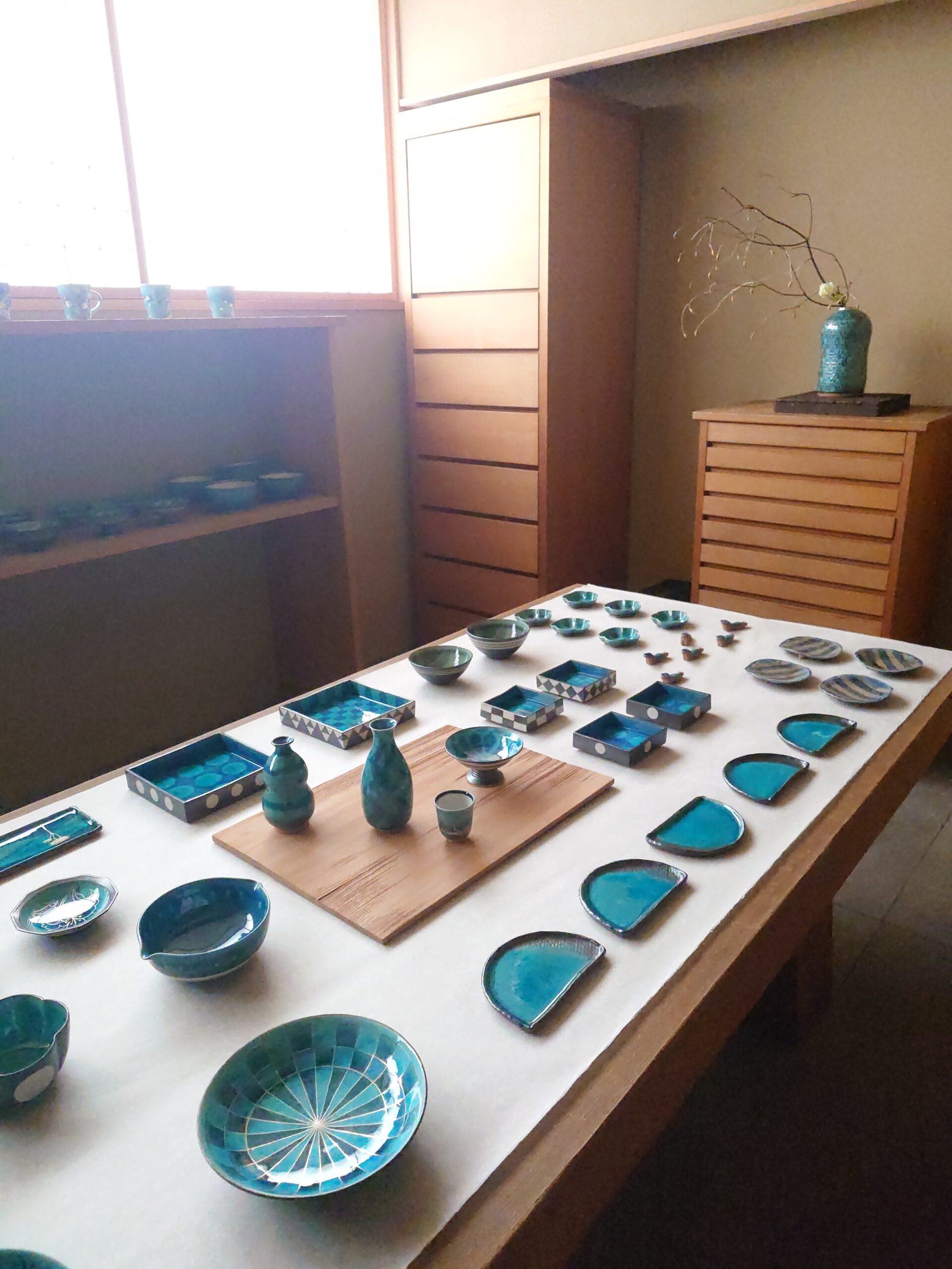 片口、平盃、鉢、四方皿、マグカップ等バリエーション豊かな作品が並びます。